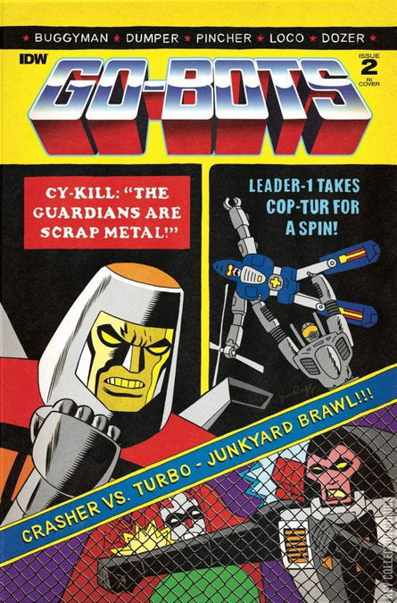 Cy-Kill and his Renegades declare war on human civilization? and they're winning. Go-Botics freshman A.J. Foster and cynical Go-Bot race car driver, Matt Hunter, along with their friendly Go-Bots Scooter and Turbo, flee for their lives as they desperately search for some way to stop the extinction of mankind and the dawn of the planet of the Go-Bots! From the creative mind that brought you IDW's Transformers vs. G.I. Joe! Visionary creator Tom Scioli unleashes his imagination on the bizarre, absurd, and wonderful world of GO-BOTS!