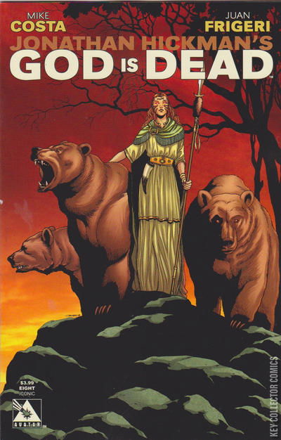 Armageddon is upon us as MIKE COSTA continues the war of the divine with all new bi-weekly issues of God is Dead! The World is at peace with Mother Earth Gaia the sole survivor of the epic war. But a new resistance sets their sites on gods from the hidden pantheons to form a coalition to attack Gaia. But with more gods returning can this be trading one master for many? JONATHAN HICKMAN's unique vision of a world literally facing divine destruction roars on with new ravages from the gods of old. Available with a Regular, End of Days, and Iconic covers by Jacen Burrows, a Carnage Wraparound cover by German Nobile, and a special Gilded Retailer Incentive Cover also by Burrows.