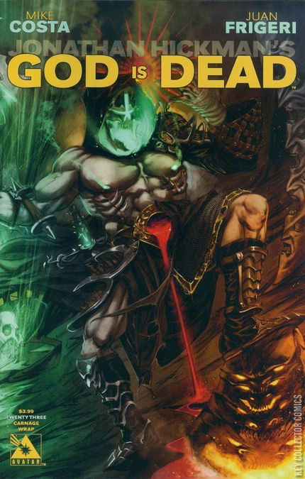 The new armies of the gods collide with the newly undead humans as the fodder for the fray! Mike Costa pushes the world to the limit as the raised pantheons engage in all-out war! And though Earth may be the prize for the ultimate victors, will a burnt cinder of rock be worth the heavenly wrath that has been unleashed? Available with a Regular, End of Days, and Iconic covers by Jacen Burrows, a Carnage Wraparound cover by German Nobile, and a special Gilded Retailer Incentive Cover also by Burrows.