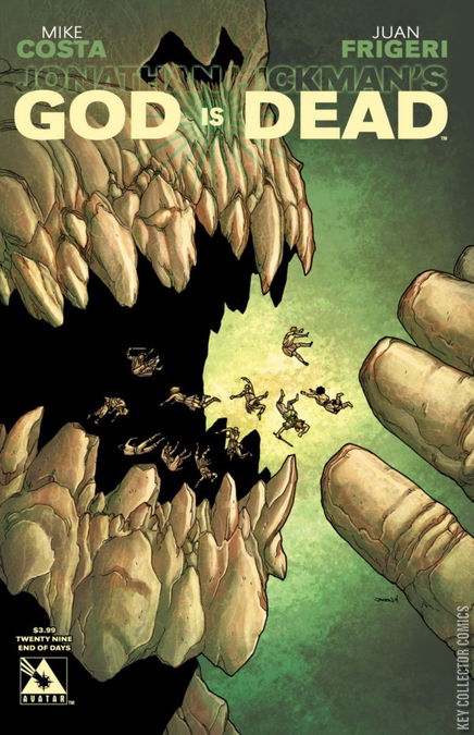 Mike Costa has taken the war ravaged Earth and expanded to war in every realm as the Titans are back, this time with horrific giant beasts to wage war on the Gods of old. As entire pantheons are wiped out, the remaining gods have to get past centuries of differences or face the same, final, fate. Available with a Regular, End of Days, Iconic, and Gilded Retailer Incentive covers by Jacen Burrows, a Carnage Wraparound cover by German Nobile, a special Enchanting cover by Facundo Percio.