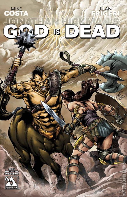 The genie is out of the bottle and the gods are amok once more. But now with no memory of antiquity they are ravenous with the power to kill and demand fealty. Gluttonous deities descend upon an unknowing mortal plane and the resulting destruction pushes the planet once more toward oblivion. Mike Costa delivers a new and terrifying chapter in the war of the divine! Available with Regular Cover by Jacen Burrows, Enchanting & End of Days Covers by Jose Luis, Iconic Cover by Juan Frigeri, a Carnage Wraparound Cover by German Nobile, and a special Gilded Incentive Cover also by Luis.