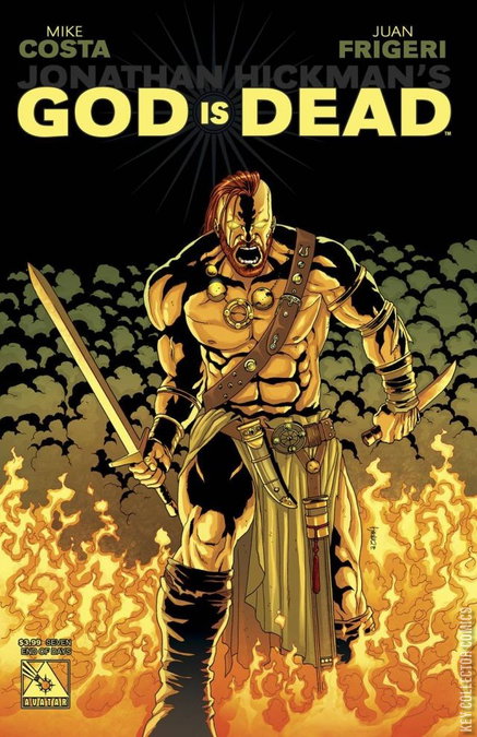 JONATHAN HICKMAN's vision for the end of the world through divine retribution continues as an ongoing series from his co-writer MIKE COSTA! After the cataclysmic battle of gods in the first arc, human religions are in tatters. A victor has laid claim to Earth and very few dare to oppose such a ruler. But oh so many gods have yet to make their play, this time they plan and plot and prepare to bring Armageddeon! And now...the things we prayed to have come once more. MIKE COSTA turns the intensity and darkness up a notch with his dramatic new stories about humanity at the brink. Available with not only a Regular cover but also a End of Days cover, Iconic, and Gilded Order Incentive copies by Jacen Burrows and a special Carnage Wraparound by German Nobile.