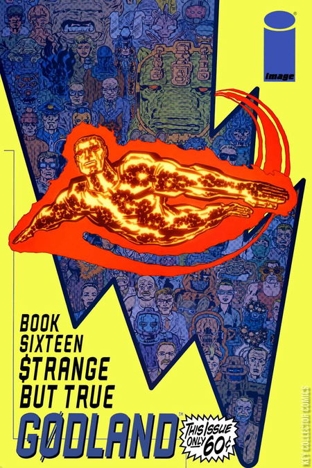 Book Sixteen: "$trange but True" In this specially priced issue, the Pentagon is forced to reassess their tenuous relationship with Commander Adam Archer. Is he an all-American hero? or a threat to humanity? It's a journey through the GODLAND saga so far, with an outcome you won't believe! The proverbial "jumping on point" for new readers. Yeah, yeah, yeah? we know you've heard it a thousand times, but this time IT'S TRUE! Affordable and informative? what more could anyone want from the ultimate Cosmic Superhero Epic?! GODLAND: SIXTEEN FOR SIXTY!