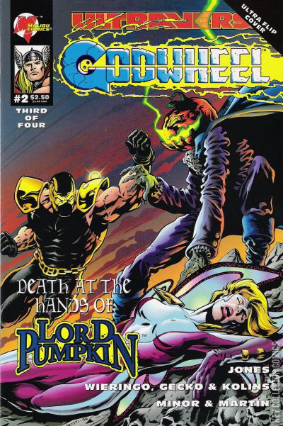 The heroes split up on seperate missions throughout the Godwheel. Hardware and Flygirl facedown Lord Pumpkin, who kills the latter.