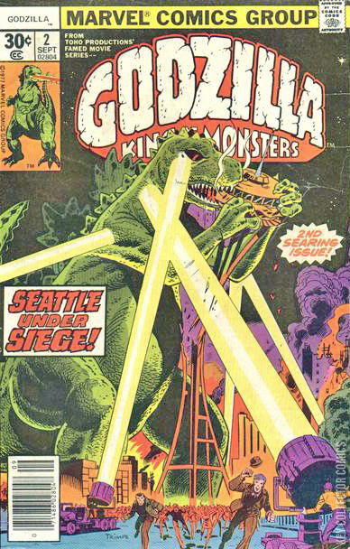 - Cover art by Herb Trimpe depicting Godzilla attacking Seattle