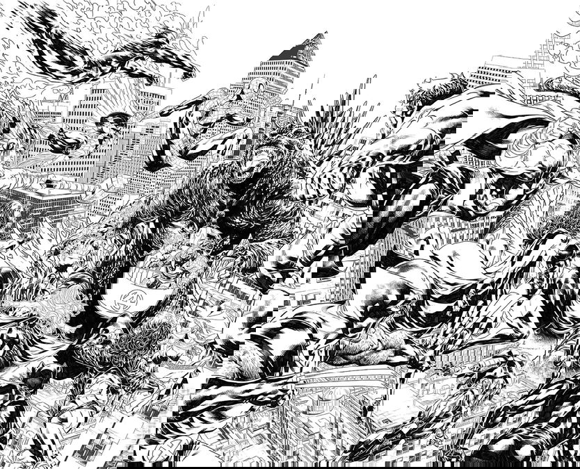 LOOK OUT NEW YORK! A previously dormant Godzilla has been angrily awoken and begun carving a path of annihilation as Earth's Mightiest Heroes band together to try and stop it's cataclysmic rampage! But when their combined efforts fail to slow the Bringer of Destruction, Earth's heroes are forced to go to extraordinary lengths to try and bring Godzilla down - including joining forces with Earths most devious villains! But will this be enough to stop Godzilla as it tears straight through the Marvel Universe into the Dark Dimension and other realms? Plus, how is the King of the Monsters connected to the mysterious metal, Vibranium, and what does this mean for Wakanda? In the face of an unstoppable force of nature, the Marvel Universe must come together like never before in this earth-shattering fight for Earth's survival. It's all hands on deck in the FIRST of FIVE electrifying chapters in this epic saga!