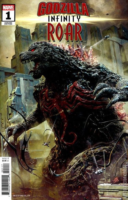 EARTH'S MIGHTIEST HEROES UNLEASH THE GALAXY'S DEADLIEST THREAT AS GODZILLA RAMPAGES ACROSS THE COSMOS! The combined forces of Earth's mightiest heroes managed to spare Earth by exiling Godzilla off into space...but in doing so may have just heralded the end of the larger galaxy! As Knull, the god of the symbiotes fans the flames of Godzilla's anger, a new campaign for galactic conquest begins with the King of the Monsters and the King in Black at the helm! Will the cosmos be able to band together to stop the two juggernauts, or will a new era of death and destruction descend upon the cosmos? One things for sure, from the Galactic Empire of Wakanda, Shi'ar Empires, Kree-Skrull space and beyond, no planet will be safe as Godzilla destroys the Marvel galaxy!