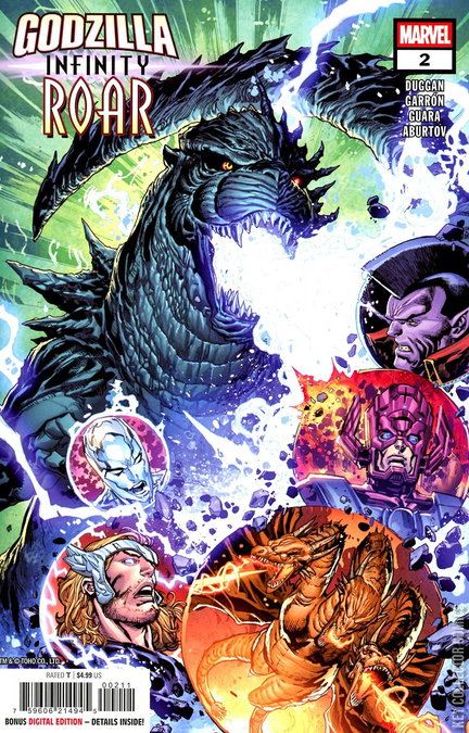 GALACTUS' HUNGER VS. GODZILLA'S APPETITE FOR DESTRUCTION! As the KING IN BLACK and the KING OF THE MONSTERS continue to cut a bloody swath across the universe, spreading KNULL'S symbiotic infection, heroes across the cosmos take desperate measures to stem the tides! THE FANTASTIC FOUR make an ally of an old enemy as elsewhere GODZILLA'S roar awakens its own ancient adversary - KING GHIDORAH! As these forces collide over ASGARD, only one thing is assured - the MARVEL COSMOS will never be the same again!