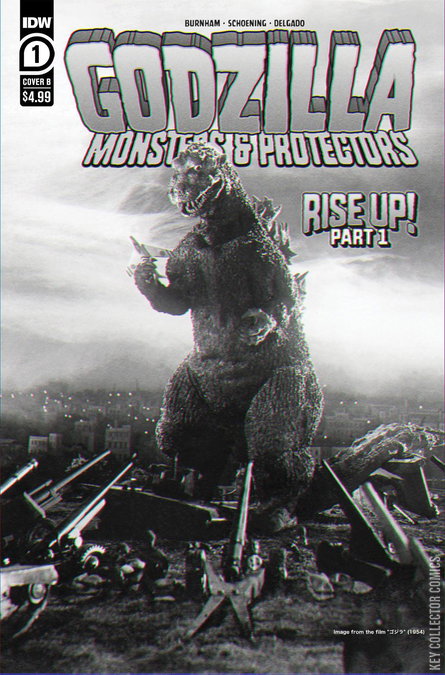 Godzilla roars back into comics! "Rise Up!" Part 1: When a coldly single-minded businessman uses an untested element to create clean energy for a profit, he inadvertently awakens the beast from the deep--Godzilla! Sensing the harm the new energy poses to the planet, Godzilla attacks the heart of the problem--humankind! It will be up to three intrepid middle-school students--with a little magic help from Infant Island--to show Godzilla that not all humans are bad... and that there is still hope for Planet Earth. Reuniting the blockbuster creative team of writer Erik Burnham, artist Dan Schoening, and colorist Luis Antonio Delgado (Ghostbusters), Godzilla: Monsters & Protectors promises to romp and stomp fans--old and new--of the greatest kaiju ever like never before!