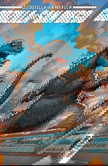 Godzilla returns to the Golden State to smash through the country’s biggest comic book convention in this oversize one-shot!What’s the biggest thing coming to Comic-Con this year? Comic book and movie announcements? Nope. Comic creators, cosplayers, and celebrities? No! Rising from the depths of San Diego Bay is the king of the monsters, ready for its destructive photo op. Move over, Hall H—this year, all eyes are on Hall G.Join Godzilla as it takes on a roster of San Diego Comic-Con all-stars. Sorry, folks, but Godzilla doesn’t wait in line. Featuring stories by Stan Sakai (Usagi Yojimbo), Greg & Fake (Santos Sisters), and more!