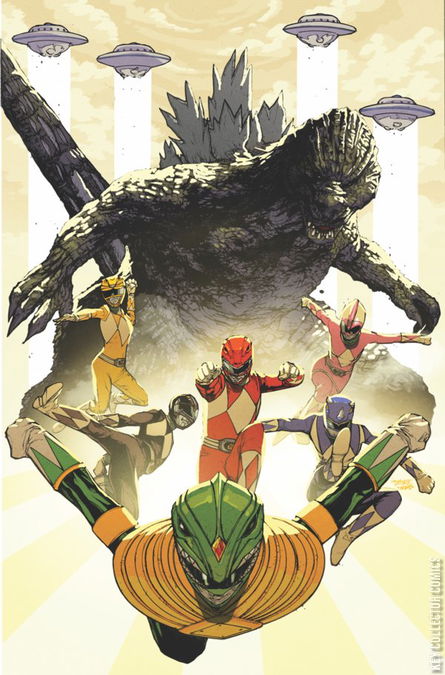 Godzilla and the Mighty Morphin Power Rangers have faced a host of terrible foes. Now, though, they face their greatest challenge—the mighty King Ghidorah! Can the “teenagers with attitude” and the King of the Monsters put aside their differences long enough to survive an attack from the three-headed tyrant? Find out in the bombastic conclusion to the most colossal crossover event of the year!