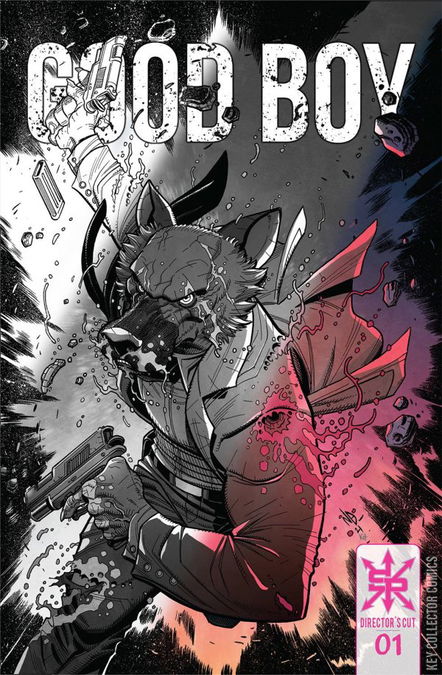 Can't get enough of Good Boy? Then here's a treat! This director's cut showcases Kit Wallis' gorgeous black and white art, has commentary from the Good Boy team, contains material previously only available in the Kickstarter version, and so much more!! It's one not to miss! Good Boy, a thrill-packed story set in a world where humans and dogs are equals, follows former mercenaries, Flint Sparks and his human, Jon, who found a way out of an industry where the job is supposed to be forever. However, everything is changed when some of their former "colleagues" break into their home and murder Jon, leaving Flint alive in the bloody aftermath. That was their FIRST mistake. Don't worry - they haven't seen anything yet. And in this cut, YOU will get to see so much more!