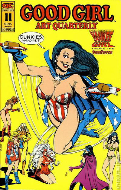 In response to the bad-girl art trend, AC Comics reprints classic good-girl stories that originally appeared in Golden Age comics, along with some new ones. A new solo Yankee Girl story, as the revived 1940s superhero tries to make a living as spokesmodel for a breakfast pastry. Also, color reprints of classic Matt Baker and Bill Ward stories, featuring Phantom Girl, Sky Gal and Torchy; and AC Comics publisher Bill Black meets TVs original Sheena, actress and artist Irish McCalla. Yankee Girl: Sugar Cakes; Torchy: Woo! Woo!; Sheena in Florida; Sky Gal; Phantom Lady: The Case of the Murderous Model; Torchy.