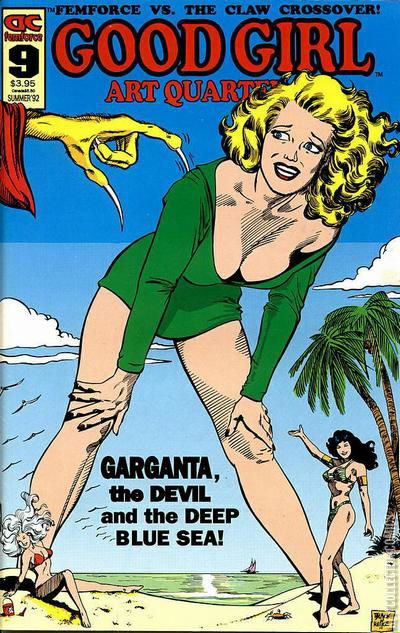In response to the bad-girl art trend, AC Comics reprints classic good-girl stories that originally appeared in Golden Age comics, along with some new ones. Femforces Garganta visits the Jungle Island home of fellow size-changing superhero Tara Fremont, only to encounter the equally gigantic Golden Age villain The Claw. Also, Classic Matt Baker Phantom Lady, Tiger Girl and Sky Girl stories; a complete Matt Baker checklist. Garganta: Island Claws; Sky Gal: Crunchy Corn; Matt Baker Checklist; Tiger Girl; Phantom Lady: The Copy-Cat Killers; Pistol Packing Pattie: Belittling; Mysta of the Moon