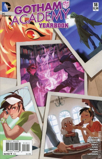 YEARBOOK PART 5 Spotting Robin running through the halls Olive and Maps chase him into Professor Milo's scary old room. Behind a stuffed vole Maps finds a vent which leads to shop class where they find a silvery set of footprints and follow them away. The footprints lead to the theatre where they fought Clayface and find Robin running up a ladder to the roof where he glides back down. Chasing after him in a groundskeeper cart that Maps drives the two find a discarded glider next to Maps' scrapbook with some additional drawings left behind by Robin and a map leading to a tree with a first edition Serpents and Spells book as a present for Maps. WHATEVER HAPPENED TO PROFESSOR MILO...? Sat alone in his laboratory in June, Professor Milo muses about the end of the scholastic year. He recalls how he saw Batman, Headmaster Hammer and Tristan Grey and, though caught spying by Coach Humphreys, he continues to watch the young afflicted man-bat. In July, Headmaster Hammer introduced Milo to Grey to see if he can find a cure for the man-bat serum. Instead he adapts it into a form that he tests upon Humphreys, turning him into a wolf-man in August. By September Humphreys is nigh-dependent upon the serum but, during the prom while all are distracted, he sneaks away into Hammer's room and steals a key. He is however caught by Hammer and fired from his position but he does not mind as it allows him to continue his research into Arkham Asylum. PRECIOUS METALS During the first shop class Mister Silversmith enters and introduces himself to the room. He begins to lecture on how important and precious silver is - an element Maps adores for its supernatural elements. The class assignment is to find an item that each member loves dearly and to encase it within silver to preserve it. Suspicious, Maps follows him and finds him talking to Argentum a silver cat statue that he reveals he covered in silver to make it worthier. Maps then sneaks into the room and steals his silver, causing the class to be dismissed and leaving Maps to her new silver dagger. TALENT SHOW At the talent show, Maps and Pomeline plan for their magic show but Maps' gloves are too small. As the curtains raise and Pomeline begins her magic chanting, Maps' glove causes her to slip from the ladder and fall. Pomeline dives in to save her and an intermission is called where Pomeline's mother comes in to congratulate her on a good performance and for her bravery. DRIVER'S ED One day Kyle takes his sister Maps for her first driving lesson. Her starting car is a golf cart adorned with a bat decal. After dubbing it the "bat-cart" Maps goes through all the steps and begins to her lesson, at barely 15 mph.