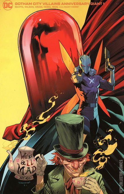 Gotham City may be protected by the Dark Knight, but this major metropolitan destination is also plagued by some of the deadliest, most nefarious villains in the DC Universe! In this oversize anniversary giant, DC Comics proudly presents tales of Batman’s deadliest foes written and drawn by some of the biggest, most exciting names in comics! 2021 marks an anniversary year for the Scarecrow, Poison Ivy, Ra’s al Ghul, Talia al Ghul, the Mad Hatter, Killer Moth, and the original Red Hood, and Gotham City Villains Anniversary Giant #1 brings these baddies to life in some big ways! Also featuring the anniversary celebration of the Penguin, written by none other than the man who brought Oswald Cobblepot to life in Batman Returns, star of the silver screen Danny DeVito !
