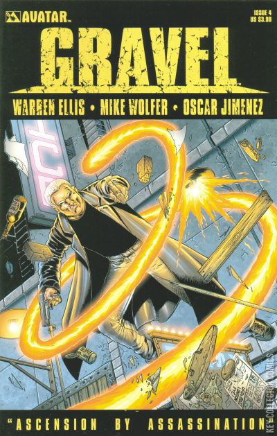 Gravel, the explosive monthly series from Ellis and Wolfer, dials up the action with this all combat magic issue! William Gravel has had a busy week -- hunting down and disposing of his former co-workers one after the next, to relieve them of their peices of the hideously powerful Sigsand Manuscript. Killing magicians is tiring work, and Gravel would much prefer to relax with a nice pint, but it looks like he's going to have to deal with yet another adversary, and what's worse, this one has not arrived alone. Edwin Royston has brought with him his nine acolytes, an assemblage of young magicians who are ready to serve under him once he has finished what Gravel started: eradicating the remainder of the Minor Seven, Britain's greatest Occult Magicians. Near exhaustion, hopelessly outnumbered, and low on bullets, Gravel will have to dig into his deepest supernatural reserves to make it though this night alive... And if he manages to outlive the acolytes, he'll still have to battle Royston to the death to determine the owner of the fourth section of the Sigsand! This issue is available with a regular cover by Mike Wolfer, a wraparound by new series artist Oscar Jimenez, and also a rare 1-in-15 Black Magic Edition featuring a new cover by Wolfer.