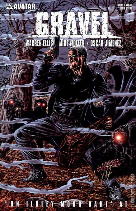 Gravel's explosive monthly series continues! The ancient Sigsand Manuscript, now in the hands of the Minor Seven, is far too powerful to be possessed by Britain's great Occult Detectives. At least, that's Combat Magician William Gravel's opinion, as he continues his quest to collect all six pieces of the supernatural text from his former associates. But the next man on Gravel's hit-list has found him first, and on the dark and fog-shrouded highland moors, a surprising confrontation will take place with an outcome that Gravel could never have anticipated. Sykes, the oldest of the Minor Seven, is one of the few still alive who personally knew the Sigsand's previous owner, Thomas Carnacki. But will Gravel survive long enough to hear the finale of one of Carnacki's most astounding cases or will the black hellhounds that accompany Sykes end Gravel's quest at its midpoint? This issue is available with a regular cover by Mike Wolfer, a wraparound by Raulo Caceres, and also a rare 1-in-15 Black Magic Edition featuring a new cover by Wolfer.