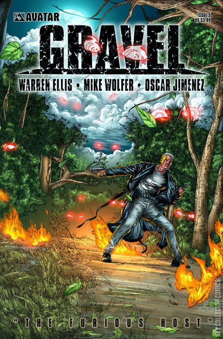 Gravel, the explosive monthly series from Ellis and Wolfer, continues its wild and bloody run! After his victory in a frenzied battle to the death with Edwin Royston and nine powerful Combat Magicians, William Gravel travels to the remote English countryside to collect the spoils of his personal war: the grand Shockham Hall and the fourth piece of the Sigsand Manuscript. Retrieving this section of the most powerful Occult tome ever written will not be easy, however, because there is something in the woods leading to Shockham Hall, and something in the black skies above that thunders down with Apocalyptic fury. These are the riders of the dead, and a beaten and exhausted William Gravel is about to become the prey in the legendary Wild Hunt! This issue is available with a regular cover by Mike Wolfer, a wraparound by new series artist Oscar Jimenez, and also a rare 1-in-15 Black Magic Edition featuring a new cover by Wolfer.