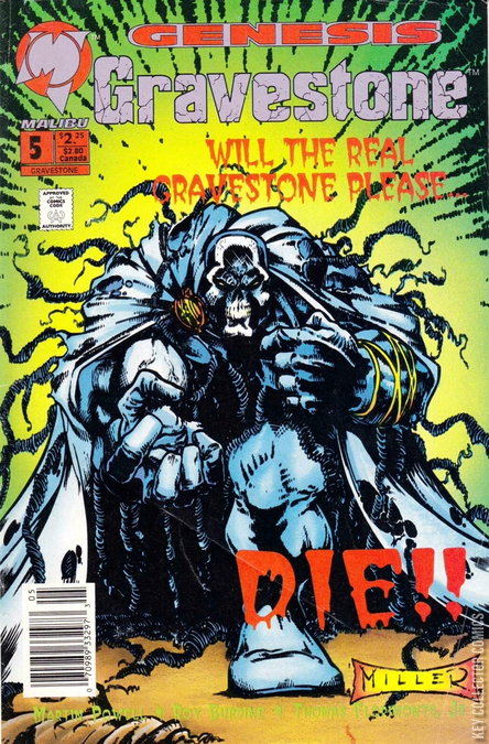 Scythe continues his rampage while Gravestone recovers at Protectors headquarters. He then appears at Christine's apartment, knowing Scythe will be there soon. Gravestone takes Christine to his underground hideaway. While playing Mozart on an organ, she awakes and hypnotically removes his mask. As he screams at her, Scythe arrives, and Christine realizes ther are 2 Gravestones, the one protecting her and the one responsible for many gruesome murders. Using one of his many collected mystical artifacts in his cave, Gravestone reveals the Head of Medusa to Scythe, transforming him into stone.