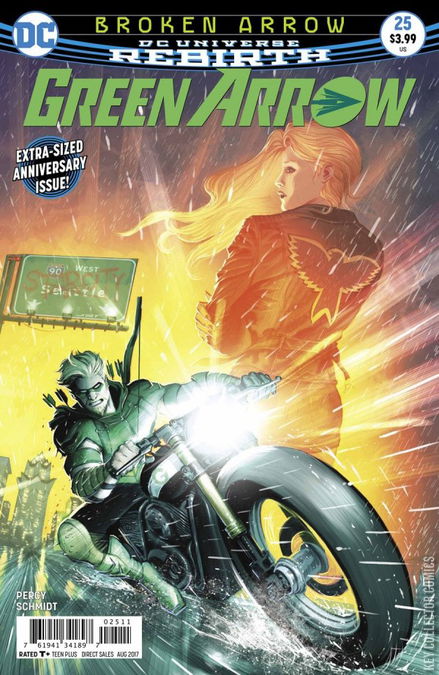 BROKEN ARROW Hopelessly divided over Oliver’s role in the rise of Star City, Green Arrow and Black Canary do the unthinkable and break up. While Dinah starts a resistance movement in the former Seattle underground, Ollie's been driven out of the city he sacrificed everything to protect. And that’s only the beginning! The next major phase of GREEN ARROW begins with in this oversized anniversary issue!