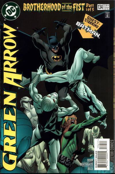 BROTHERHOOD OF THE FIST, PART 1 - THE STALKERS Green Arrow is in Gotham on the trail of high-tech weapons dealers when he and Batman are targeted by the Brotherhood of the Monkey, looking to avenge the humiliating defeat of the Silver Monkey at Connor's hands! Continues in Detective Comics #723