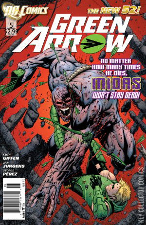 His touch melts flesh and burns through steel, and now the nightmare creature known as Midas wants Green Arrow dead! What secret from Green Arrow's past fuels Midas's rage, and how does it all tie in to the enigmatic woman known only as Blood Rose? Secrets are revealed as Ollie Queen's past comes back - to kill him!