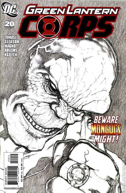 RING QUEST, PART ONE Mongul is back! Destroying the JLA Watchtower wasn't enough - now he's more powerful than ever and ready to instill great fear! The remaining Guardians of the Universe observe both Green Lantern and Sinestro rings looking for new users. The Guardians are observing the yellow power rings to see who the rings will choose so they can attack the wearer sooner. Guy Gardner is still using the trusty throwing-the-dart-on-a-board method to figure out where to hang his hat and call home. He keeps hitting one spot more than any other and figures someone is trying to tell him something. Meanwhile, Kyle Rayner is channel surfing and every channel seems to have the same theme. Kyle concludes that someone must be trying to tell him something. WOW!! Deja vu!! Mongul is looking at his ring...