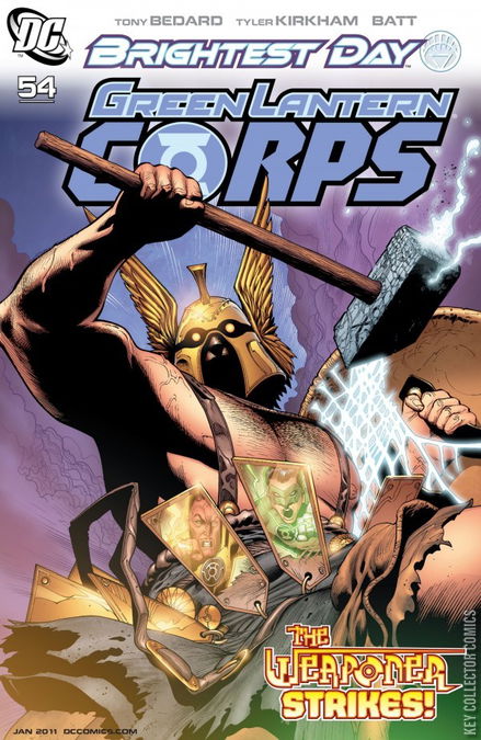 The new ongoing art team of rising star Tyler Kirkham and dynamic inker Batt kicks this BRIGHTEST DAY tie-in into high gear as Kyle Rayner attempts to recruit Sinestro in a mission to save his daughter Soranik Natu! But the leader of the Yellow Lanterns is more concerned with exterminating the "alley rat" Emerald Warrior, and the pair face off in hand-to-hand combat!