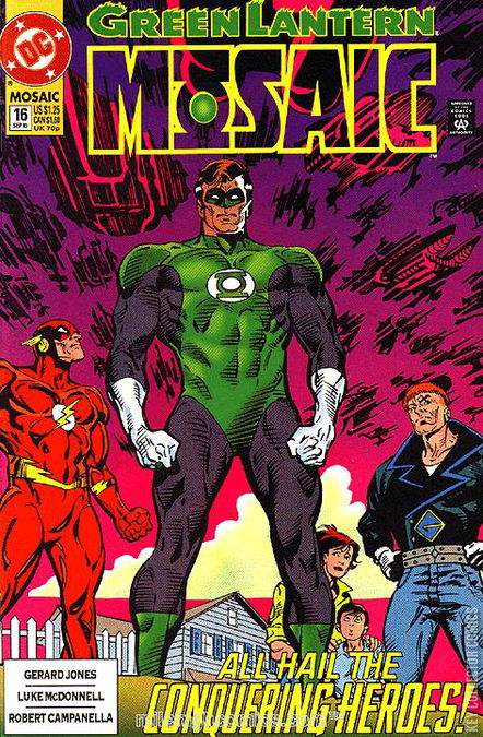 "Great Speckled Bird" finds Flash, Guy Gardner, Power Girl and Martian Manhunter, led by Hal Jordan, all arriving on the Mosaic to take the captive cities back from the Guardians and John Stewart, but John has even bigger concerns as he's found his dead wife, Katma Tui...alive!