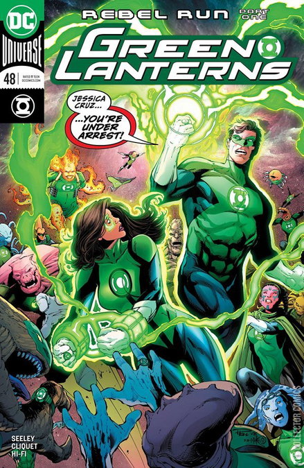 REBEL RUN, PART ONE The Guardians can no longer stand idly by as Jessica Cruz’s ring gains more sentience. They’ve seen anomalies within the rings turn into universal nightmares, and now it’s up to their greatest Lantern, Hal Jordan, to relieve Jess of her ring!