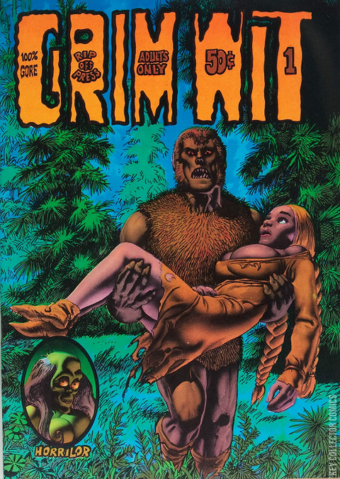 - First printing has the 'Rip Off Press' logo located in the 'R' of 'Grim Wit'
