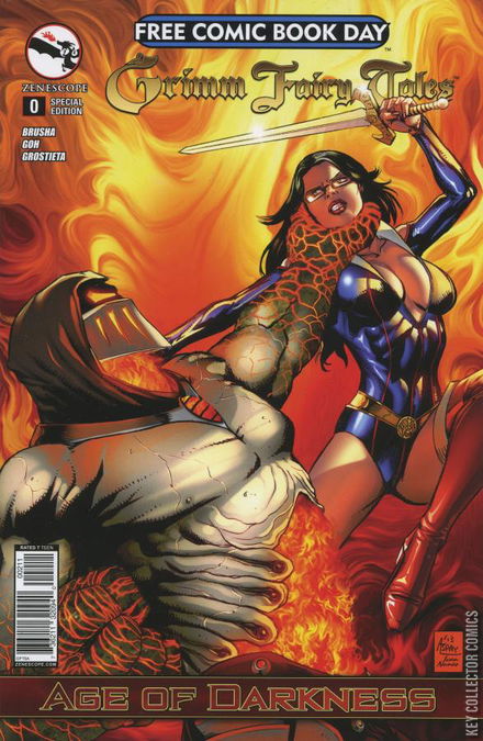Extinct for millennia the most powerful and terrifying creatures to ever exist in the Grimm Universe have now returned. They are the Bloodhunters, and their sole purpose is to hunt down and exterminate Highborns and they have their sights set on their first prey since returning...Professor Sela Mathers. This special Free Comic Book Day edition of Grimm Fairy Tales ties directly into GFT #100 and the upcoming Age of Darkness Grimm Universe event.
