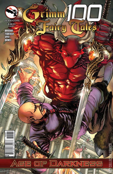The landmark issue of one of the hottest indie comics of the past decade has arrived! It all began with Sela Mathers, the Guardian of the Nexus, a woman tasked with teaching misguided humans right from wrong. But Sela's struggles, her ups and downs, the effects of those she's helped and those she's lost to darkness, will all culminate in this epic 100th issue! Sela will take on the biggest threat she's ever faced as the Dark Queen looks to plunge the Grimm Universe into an Age of Darkness. *AGE OF DARKNESS Tie-in