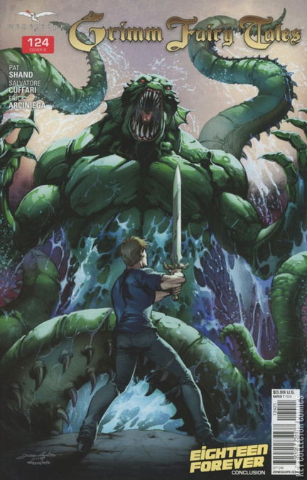EIGHTEEN FOREVER, PART THREE - The penultimate issue of Zenescope's longest-running series, GRIMM FAIRY TALES! After fleeing from Arcane Acre, our heroes find themselves facing off against Bloody Bones' final defense: the gargantuan Kraken! As we race toward a conclusion 125 issues in the making, the students of Arcane Acre say goodbye to a dear friend… and Ali makes a devastating choice that might tip the balance in the war against Bloody Bones.