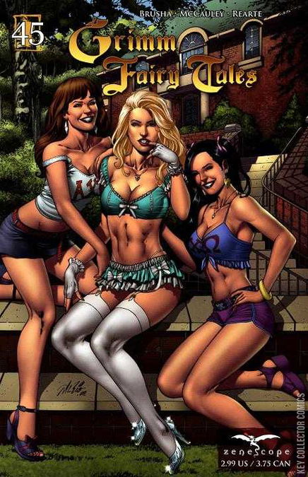 What ever happened to Cinderella? Way back in Grimm Fairy Tales #2 we met Cindy, a poor college freshman being tortured by the snobby sorority girls on campus until Sela came to her rescue. Under Belinda's influence Sela transported her to the fairy tale realm and promised to make all of Cindy's dreams come true for a small price...Her Soul. Cindy has been living the good life on campus since she made her deal but when she gets a visit from the Devil's right hand man she finds out the time has come to pay up. Cindy's fate is revealed in this issue...Cinderella Revisited.