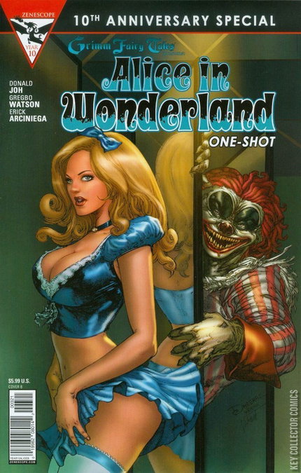 The third of six special 2015 Zenescope 10th Anniversary One-Shots is here. When Alice befriends a boy during her imprisonment in Wonderland, will the madness of the mysterious realm destroy them both or will their friendship keep them from losing their sanity? Return to a Wonderland unlike one you've seen before and watch as Alice's adventures turn into her worst nightmares.