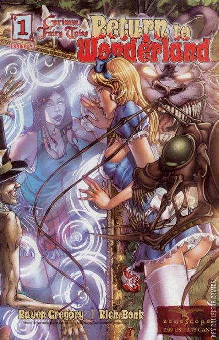 Years have passed since Alice's first fell down the rabbit hole. Now an adult with a family, Alice's mind has drifted away from the safe shores of sanity into a silent world of madness. A madness that will not be denied and a madness her daughter Calie will soon discover for herself. Witness a bold new dark vision of Wonderland from the twisted minds of Raven Gregory and Zenescope Entertainment. This #1 issue features 4 different covers by premiere cover artists Al Rio and Eric Basadula!