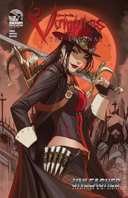 Vampires invade the Grimm Universe in this bloody, sexy, and haunting tie-in to Zenescope's UNLEASHED event. Reunited with the Black Death, the vampires that sired her centuries before, Samira's new life comes into bloody conflict with her old one. Meanwhile, Van Helsing's search for Sela leads her to a familiar face that might not be very pleased to see her. ' -UNLEASHED tie-in! ' -Van Helsing back-up stories in each issue!