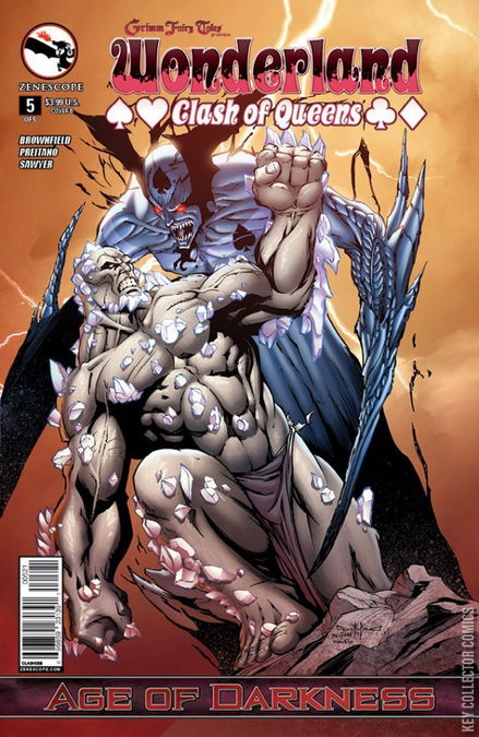 ALL OUT WAR IN WONDERLAND! The Queen of Hearts has the Ebony Blade... and that does not sit well with Spades, Diamonds, and Clubs. The three armies converge on Hearts' castle, but will they destroy one another before conquering Hearts' army? Whoever is left standing will control all of Wonderland! AGE OF DARKNESS Tie-in