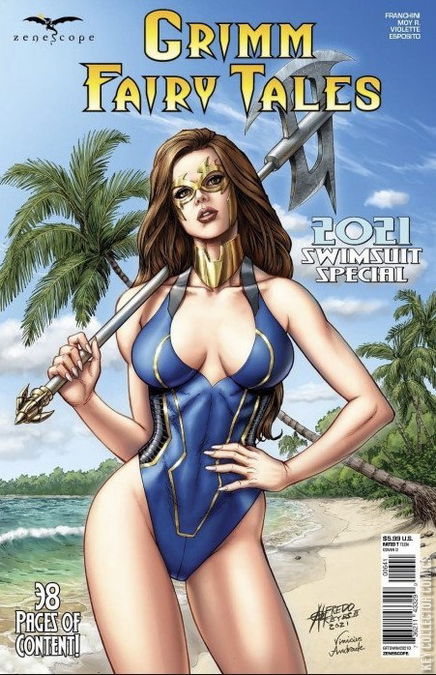 Just in time for summer, comes the Grimm Fairy Tales 2021 Swimsuit Special! Get ready to check out all of your favorite Grimm Universe heroines and villainesses, soaking up the sun while wearing the season's hottest swimsuit fashions! Some of the industry's top artists contribute gorgeous pin-ups of the Grimm Universes' most popular female characters in this stunning collection. Also includes a never before published Grimm Fairy Tales short story!