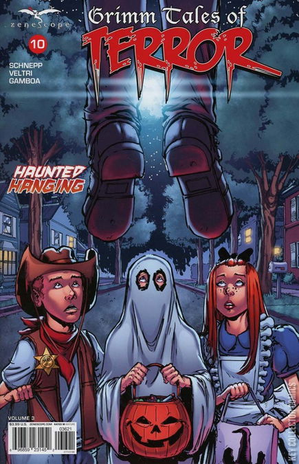Halloween Hanging! After a grisly mishap in a Halloween haunted house, a young man finds himself haunted by demonic specters. Wondering if he's going insane, or if he is truly being followed by something sinister, he turns to his friends... but what he discovers will uncover a shocking and chilling truth. This Halloween, Grimm Tales of Terror is more terrifying than ever!