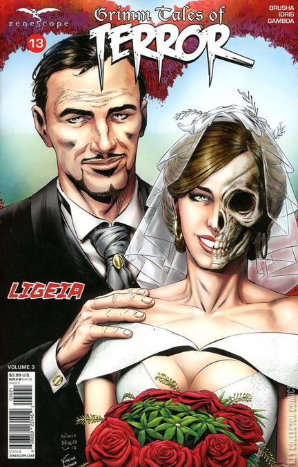 Life is a precious commodity and one that should not be spent frivolously. So when a man's wife takes ill and suffers the horrible fate of death, her miraculous recovery should be one of joy. But nothing is ever as it seems in the realms of Tales of Terror, and sometimes the greatest gifts should be looked at with the highest of skepticism. Be sure not to miss this new terrifying issue from the writer of Satan's Hollow and Grimm Fairy Tales!