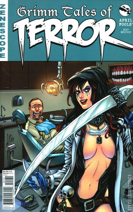 The high class, comedy stylings of Zenescope Entertainment returns this April for another edition in the long awaited, first ever, sought after by at least eight people, 2017 Tales of Terror April Fool's Edition. Four Tales of Terror stories are re-lettered with alternate story-lines and some alternate artwork to create brand new takes on past issues that will have you laughing out loud, or sobbing into a pillow, however you express joy, is not judged here, as all seriousness is left at the door in this hilarious edition of tales, from Monster Under the Bed, to Bloody Mary, as Tales of Terror, gets the Mystery Science Theater 3000 treatment!