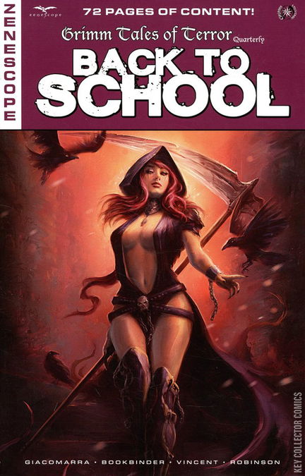 72 Pages of Content! In these hallowed halls of learning, a new guidance counselor has arrived with a very...unique view of right and wrong. Her name is Keres, otherwise known as the Goddess of Death, and it's best to heed her teachings as your very life may depend on it. Follow four new tales of terror, as both students and teachers alike will be finding out firsthand that the lessons learned can sometimes be fatal. Don't miss this terrifying collection of stories set in the most terrifying place one can imagine, high school, in this new, over-sized issue!