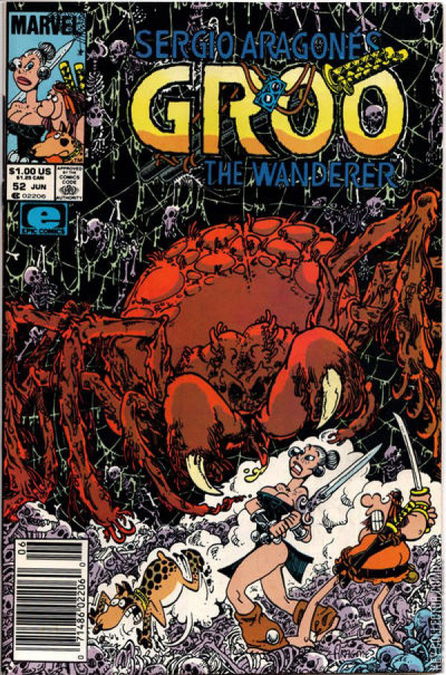 Comic featuring the humorous misadventures of the mighty (physically) but not-so-great (mentally) warrior named Groo. This issue features "The Arana" in which Groo and Chakaal try to stop a human sacrifice. Story and art credits: Sergio Aragones.