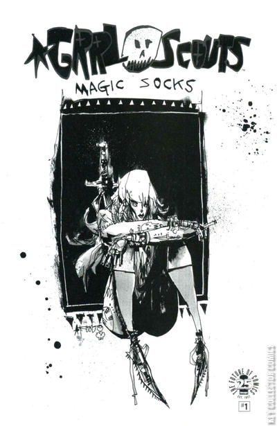 JIM MAHFOOD (Tank Girl, Clerks) debuts his first new creator-owned work in years with the glorious return of GRRL SCOUTS! Join Gwen, Daphne, and Rita as they reunite for a pulse-pounding psychedelic adventure through the streets of Freak City. This first issue is stuffed to the gills with an action-packed story, bonus art, soundtrack, sketchbook, and a behind-the-scenes comic thingy. Plus, a variant cover by the one and only SKOTTIE YOUNG! Pure fun! Pure flavor!