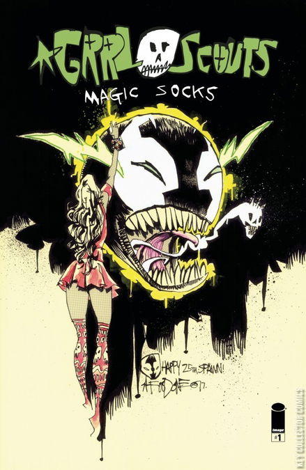 JIM MAHFOOD (Tank Girl, Clerks) debuts his first new creator-owned work in years with the glorious return of GRRL SCOUTS! Join Gwen, Daphne, and Rita as they reunite for a pulse-pounding psychedelic adventure through the streets of Freak City. This first issue is stuffed to the gills with an action-packed story, bonus art, soundtrack, sketchbook, and a behind-the-scenes comic thingy. Plus, a variant cover by the one and only SKOTTIE YOUNG! Pure fun! Pure flavor!