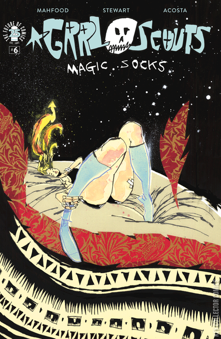MINI-SERIES FINALE The stunning conclusion to the epic MAGIC SOCKS saga! Daphne returns to Earth to hopefully save Gwen and Rita's butts. Will the Grrl Scouts finally resolve their differences in time to take out Josie and her murderous cult of teenage fans? This ish is stuffed to the gills with an action-packed story, bonus art, soundtrack, and sketchbook. Plus, a variant cover by artistic sensation ERIC CANETE!