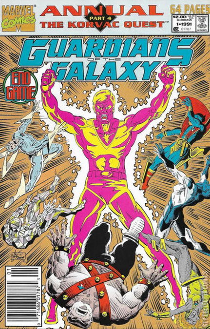 THE KORVAC QUEST -- Continued from the pages of Silver Surfer Annual #4, the storyline concludes with the Guardians returning to their own time in order to prevent the birth of Korvac. If they should fail --- their universe will come to an end!Plus, pin-ups and feature pages about the Guardians and their deadliest enemies.